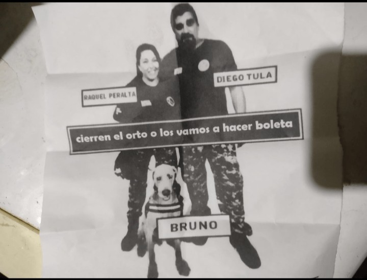 Según contó Tula, este martes por la noche le dejaron una nota en el buzón de su casa que decía: «Cierren el orto porque si no van a ser boleta». «Salgo afuera y reviso el buzón. Vi un papel y pensé que era una propaganda. Esto fue alrededor de las 10 de la noche. Lo iba a tirar y veo lo que decía. Decían ‘cierren el orto porque si no van a ser boleta’ y no quise decirle a mi señora para no preocuparla», relató el adiestrador en declaraciones al canal de noticias TN.