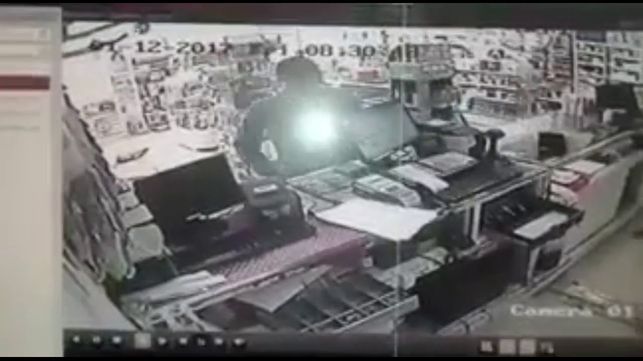 De acuerdo con lo que quedó registrado en una cámara de seguridad de la farmacia, apenas el policía comenzó a caminar hacia adentro del local, uno de los ladrones y el empleado se agacharon y se escondieron detrás del mostrador