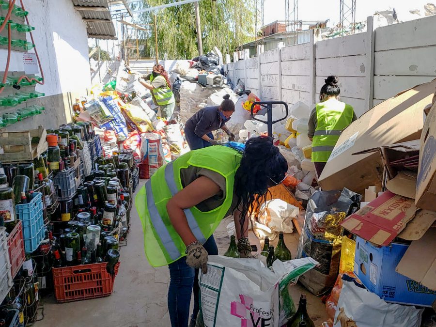“Tenemos 36 Ecopuntos, y después de 4 años y de haber establecido el primer Centro de Acopio en Río Encantado, estamos gestionando el segundo en calle 3, esquina 117, que ya funciona desde el 11 de julio de este año, con plena aceptación de los vecinos y participación de los recolectores informales. En dos turnos se reúnen los recicladores que, respetando todas las medidas de higiene y seguridad necesarias, separan los materiales para ser embolsados y retirados por la fábrica que apoya estos proyectos”, explicó Ana Gómez, coordinadora de «Berazategui Recicla». Y agregó: “Esto nos hace sentir realmente orgullosos. Se está construyendo este espacio con material reciclado; el paredón con botellas de vidrio y cubiertas de autos, y el mural con tapitas de plástico”.