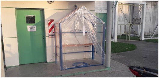 La construcción de estas estructuras surgió en las mesas de diálogo impulsadas por el Ministerio de Justicia y Derechos Humanos de la provincia de Buenos Aires que se desarrollan en los establecimientos carcelarios y de la que participan las autoridades de las dependencias y referentes de los distintos pabellones , en el marco de la pandemia por el Coronavirus.