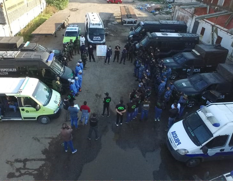 Ante del cumplimiento de los allanamientos se formalizo el protocolo de prevención ante e COVD 19 en una charla instructiva, a la vez que la totalidad de los testigos de actuaciones, se les coloco camisolín , antiparras, guantes y cofia generando una desinfección por parte de policía ecológica en vehículos oficiales utilizados, como así también en los domicilios allanados.