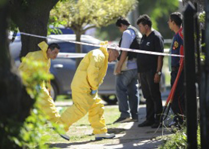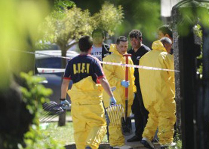 Las fuentes precisaron que los peritos advirtieron en el terreno irregular del jardín un sector de tierra removida, tapado con maderas y chapas, al lado de una especie de huerta, y cavaron allí.