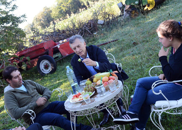 Macri visitó, fuera de la agenda oficial, a una pareja que lleva adelante un emprendimiento de producción orgánica de frutas y verduras y, luego, una escuela.