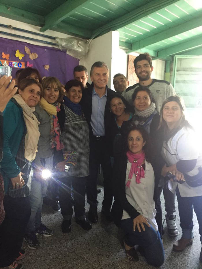 En tanto, tras esa visita y cuando se trasladaba al helipuerto para abordar el helicóptero que lo trasladaría a la Casa Rosada, el mandatario fue saludado por dos maestras que esperaban su paso en la puerta de la Escuela número 5 Guillermo Hudson, ubicada en la avenida de Los Inmigrantes, entre 1363 y 1374, de Villa San Luis, una zona de casas quintas y granjas.
