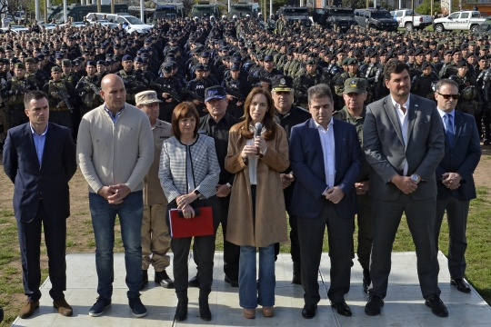 La mandataria explicó que, desde que se engrosó el número de efectivos de la Policía bonaerense y Nación enviara 6.000 efectivos a la provincia, se produjo una «baja de homicidios, secuestros y piratería del asfalto», junto a un combate mayor «contra las drogas».