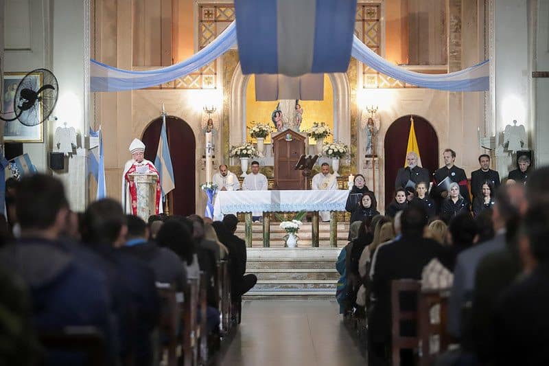 Desde el altar mayor, monseñor Tissera recordó el sentido del Tedeum —una oración de agradecimiento de más de 1600 años de historia— como una práctica viva que ha acompañado los momentos más significativos de la vida nacional. «El Tedeum ha servido para unir a la comunidad en actitudes constructivas y superadoras», expresó el obispo.