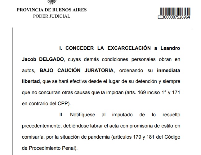El magistrado consideró que no existe riesgo de fuga o de entorpecimiento de la causa por parte de Delgado -quien no posee antecedentes penales-, por lo que ordenó su excarcelación. Asimismo, dispuso que el imputado no puede “ausentarse de su domicilio por más de veinticuatro horas sin conocimiento ni autorización previa” del Juzgado. A Delgado se le imputa el hecho ocurrido la mañana del 13 de julio último, cuando Becerro fue embestida por un automovilista que circulaba por la ruta 53, en una zona rural de Florencio Varela.