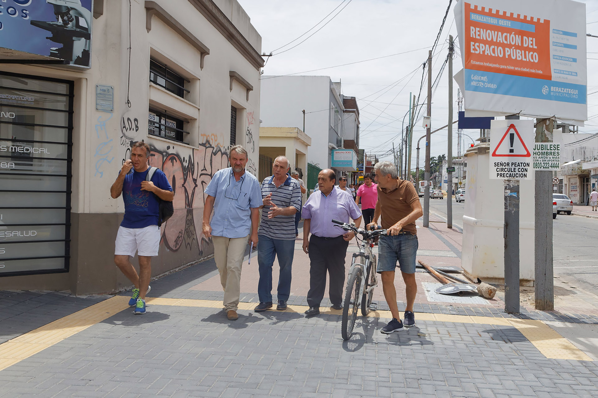 Eduardo Puszczyk, director de Proyectos Urbanísticos y Patrimoniales de la Comuna, expresó: “La gente le manifestó al doctor Mussi su agrado y satisfacción por este trabajo, así que a nosotros nos alienta a seguir adelante”, y explicó: “Lo llamamos tratamiento integral porque no solamente es la remodelación de veredas -que es lo más visible-, sino que también se trata de la renovación completa de las luminarias con tecnología led, el arbolado con especies autóctonas, el recambio del mobiliario urbano, las barandas de las esquinas, las paradas de colectivo, los bicicleteros, los cestos de residuos, todo con una nueva línea de diagramación y fabricado en los Talleres del Programa ‘Hacemos Futuro’ (ex ‘Argentina Trabaja’)”.