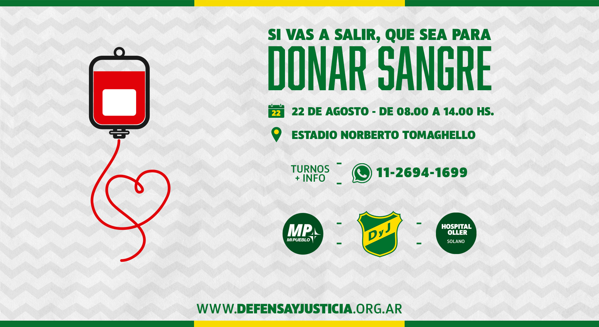 Con el mensaje «Extrañas el «Tito», bueno que mejor escusa que colaborar con #DefensaSolidario el próximo 22 de agosto de 8 a 14 hs. En la Campaña «Si vas a salir, que sea a DONAR SANGRE» Te esperamos en el Tito, dona tu sangre de Halcón que ayudará a salvar muchas vidas! No vengas sin turno!!» ,los dirigentes de Defensa y Justicia invitan a los donantes a través de la red social twetter.