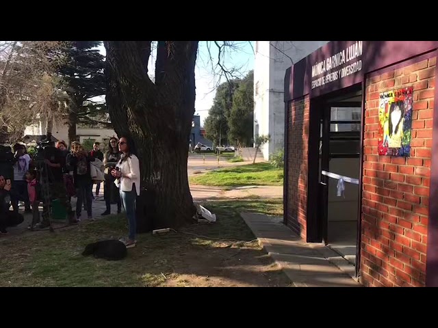 El corte de cinta estuvo a cargo de Giovanna Lujan, madre de Mónica y sus hijos , quien luego expresó conmocionada “Este espacio que lleva el nombre de nuestra hija nos emociona y que nuestro dolor se convierta en algo para que más mujeres vengan acá a tener más contención , que muchas no lo tuvieron. Ahora hay un espacio donde todas las mujeres están invitadas”
