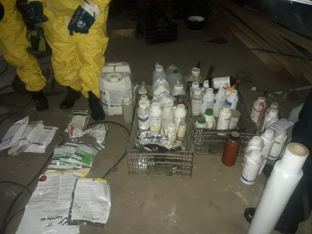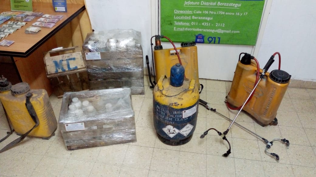 En ese marco de explotación, los detenidos de apellido H. formarían parte de una familia también de origen boliviano que traería gente en forma ilegal desde su país para someterlos laboralmente en alguna de las 10 quintas que poseen en la zona donde son conocidos como gente “muy peligrosa”. Durante los allanamientos se procedió al secuestro de ocho teléfonos celulares, dos notebook, dos tarjetas de memorias, una cámara fotográfica Nikkon n° 3418291; cinco cajones de madera sin barniz con inscripción M-C, cinco bidones, cuarentea botellas y cinco bolsas en cuyo interior se encontraron agroquímicos y sustancias peligrosas. Por otra parte se seceustró dinero en efectivo 100.280,00$ pesos argentinos discriminados en diferentes billetes, 260,00 dólares discriminados en diferentes billetes y armas y municiones: sesenta de escopetas de diferente calibre, dos escopetas, un arma de fuego tipo revólver con cinco municiones calibre 32 marca S&WL-CBC que se encontraba apto para el disparo, dos garrafa de 10 kg para sustancias peligrosas, entre otros objetos.