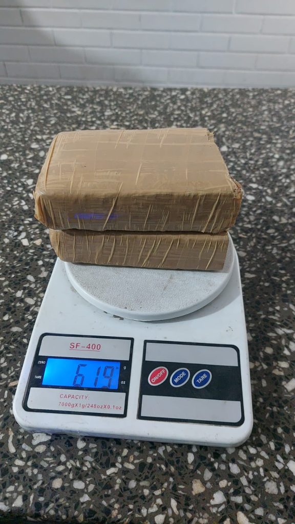 - 619 gramos de marihuana, distribuidos en dos “ladrillos”