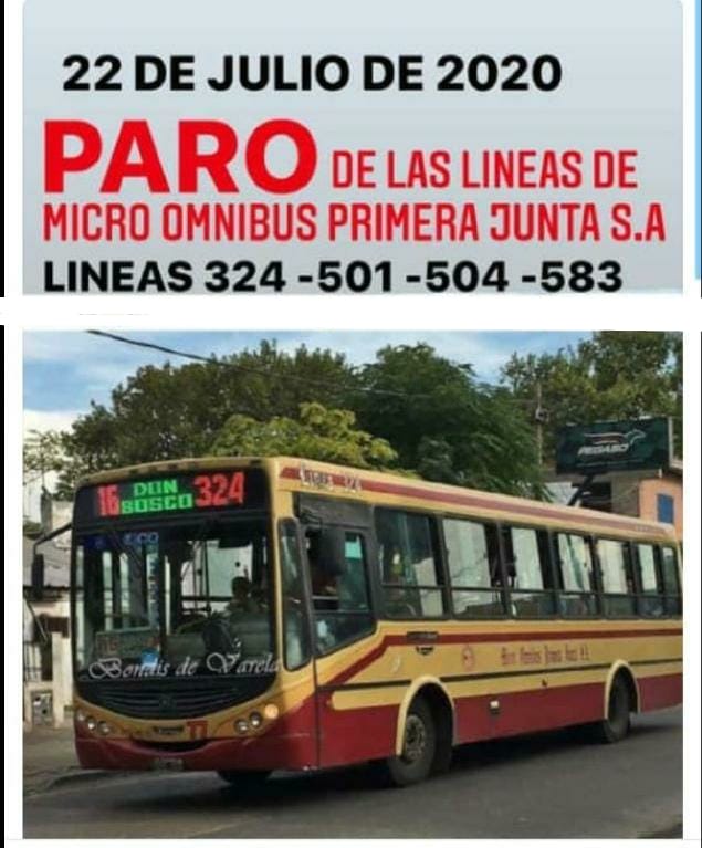 Paro de choferes de la Empresa Primera Junta (324), la medida de fuerza es en repudio al violento asalto que sufrió , en la noche de ayer, un chófer del uno de los ramales al ser atacado por delincuentes a la altura de calle 7 en Ingeniero Allan. Los malvivientes le mutilaron un dedo de a mano.