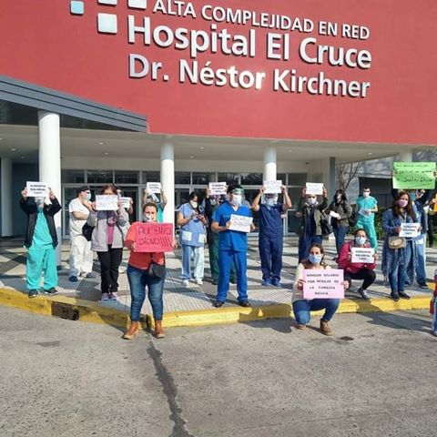 Personal del Hospital El Cruce de Florencio Varela, que viene realizando una inmensa tarea en la lucha contra el coronavirus, realizaron este mediodía una protesta reclamando mejoras salariales ya que denunciaron que «hay empleados que cobran por debajo de la línea de pobreza!.