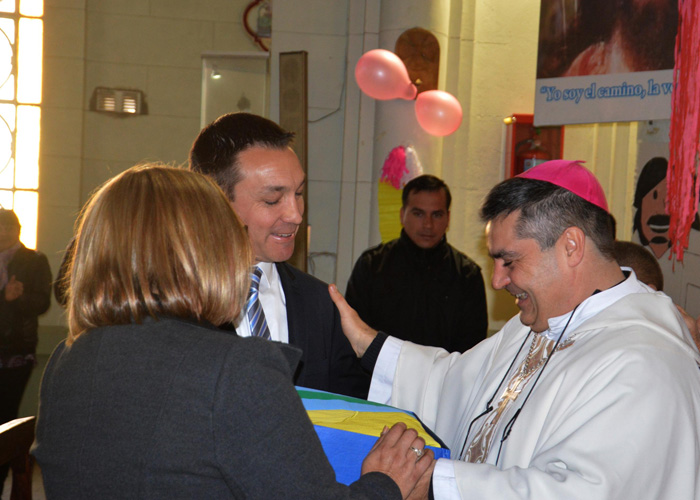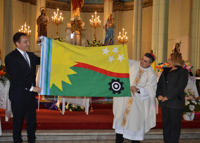 Luego de la eucaristía, el Jefe Comunal procedió a hacer entrega de la bandera varelense, que desde el 20 de Junio pasado flamea en el distrito.