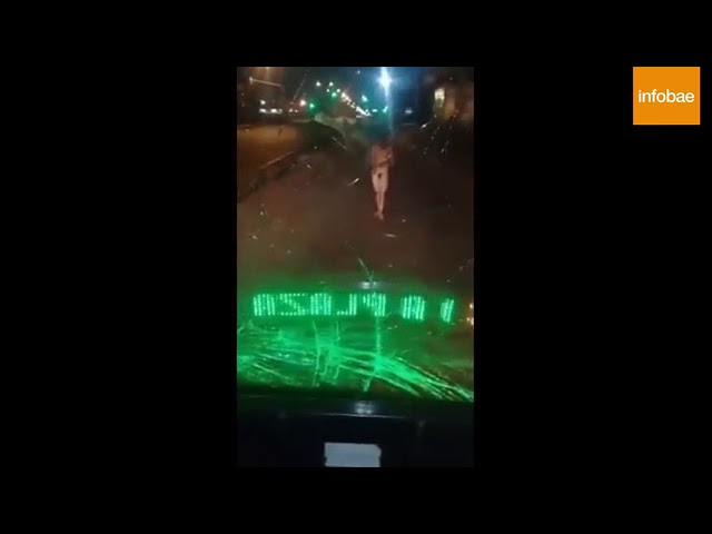 En las imágenes se observa a un joven que camina desnudo, golpea su cabeza contra el vidrio de un colectivo y se muerde en distintas partes de su cuerpo.