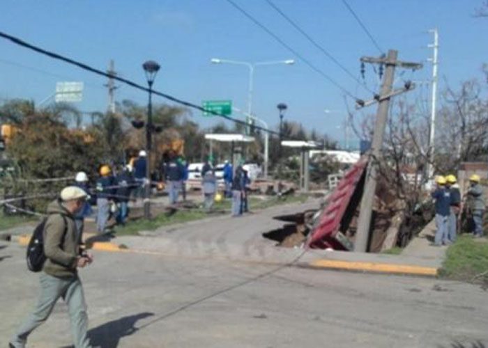 Este miércoles por la mañana, un camión cayó adentro de un bache de más de cinco metros en Berazategui. Edesur informó que «el desmoronamiento se produjo a raíz de trabajos cloacales de la empresa AYSA y por eso debieron cortar las líneas de media tensión