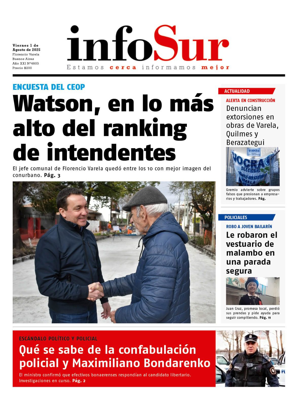 En ese escenario, Watson no solo logra sostener su gestión con altos niveles de aceptación, sino que también comienza a ganar peso dentro de la interna peronista, siendo uno de los nombres en danza para futuras estrategias del Frente de Todos en el sur del GBA.
