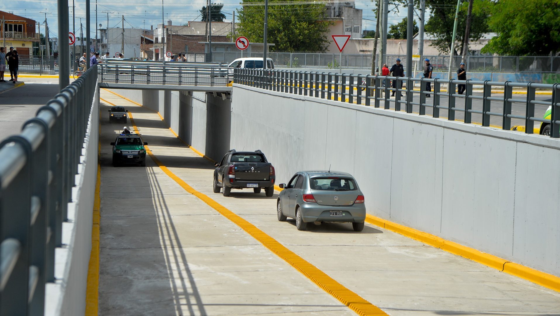 Previo a la inauguración, tanto el jefe comunal como los funcionarios locales y nacionales transitaron por el túnel desde la av. Hudson hasta la intersección de calle Ituzaingó y Bocuzzi, donde recibieron el acompañamiento de los vecinos de la localidad por poder de ahora en más el cruce.
