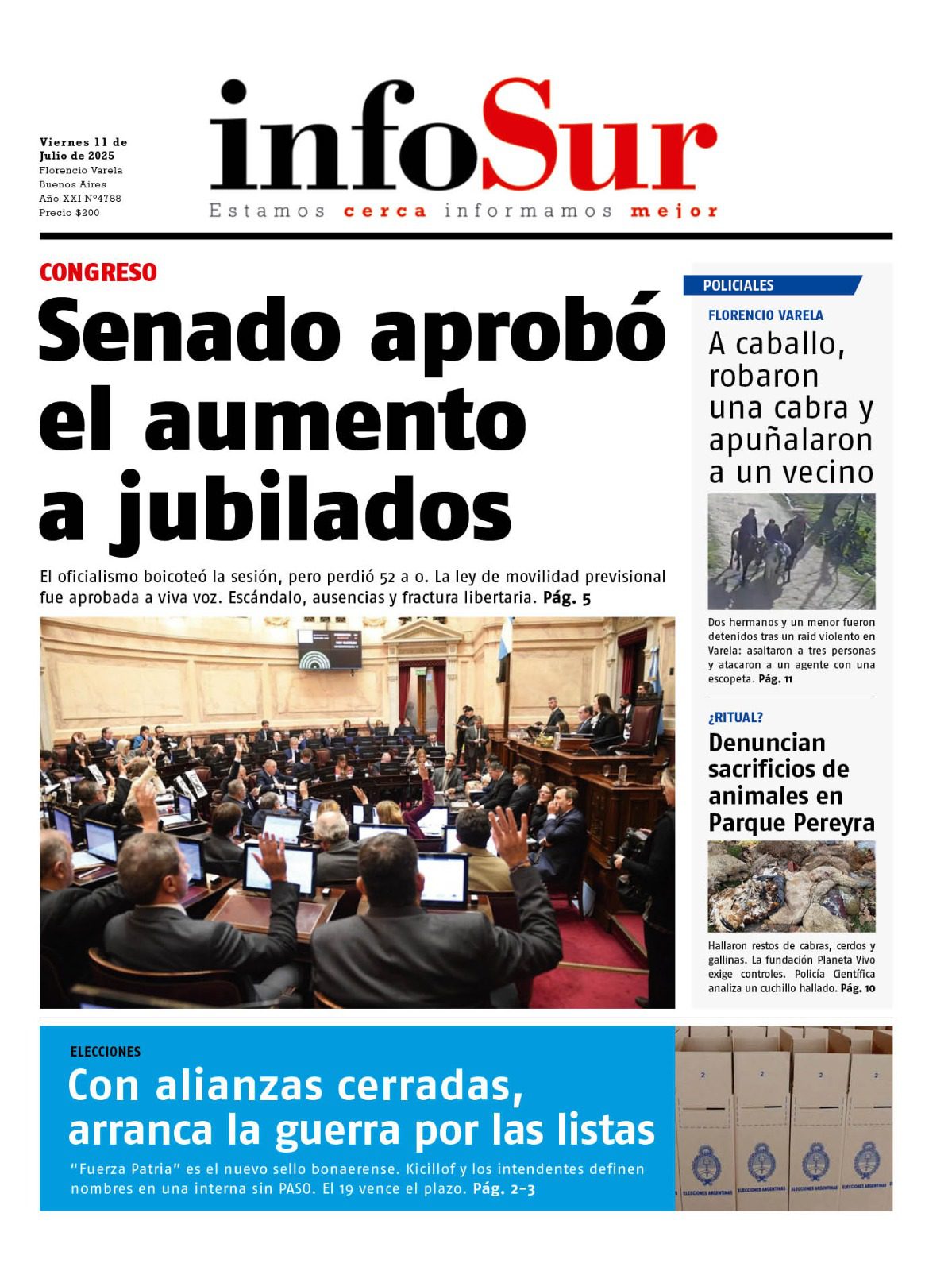 La edición impresa del diario Infosur ya está en las calles y también disponible online en formato Flipbook. Enterate de todas las noticias del conurbano sur: política nacional, alianzas, listas electorales, hechos policiales en Florencio Varela y Berazategui, y las voces jóvenes que homenajearon el 9 de Julio en clave de freestyle.